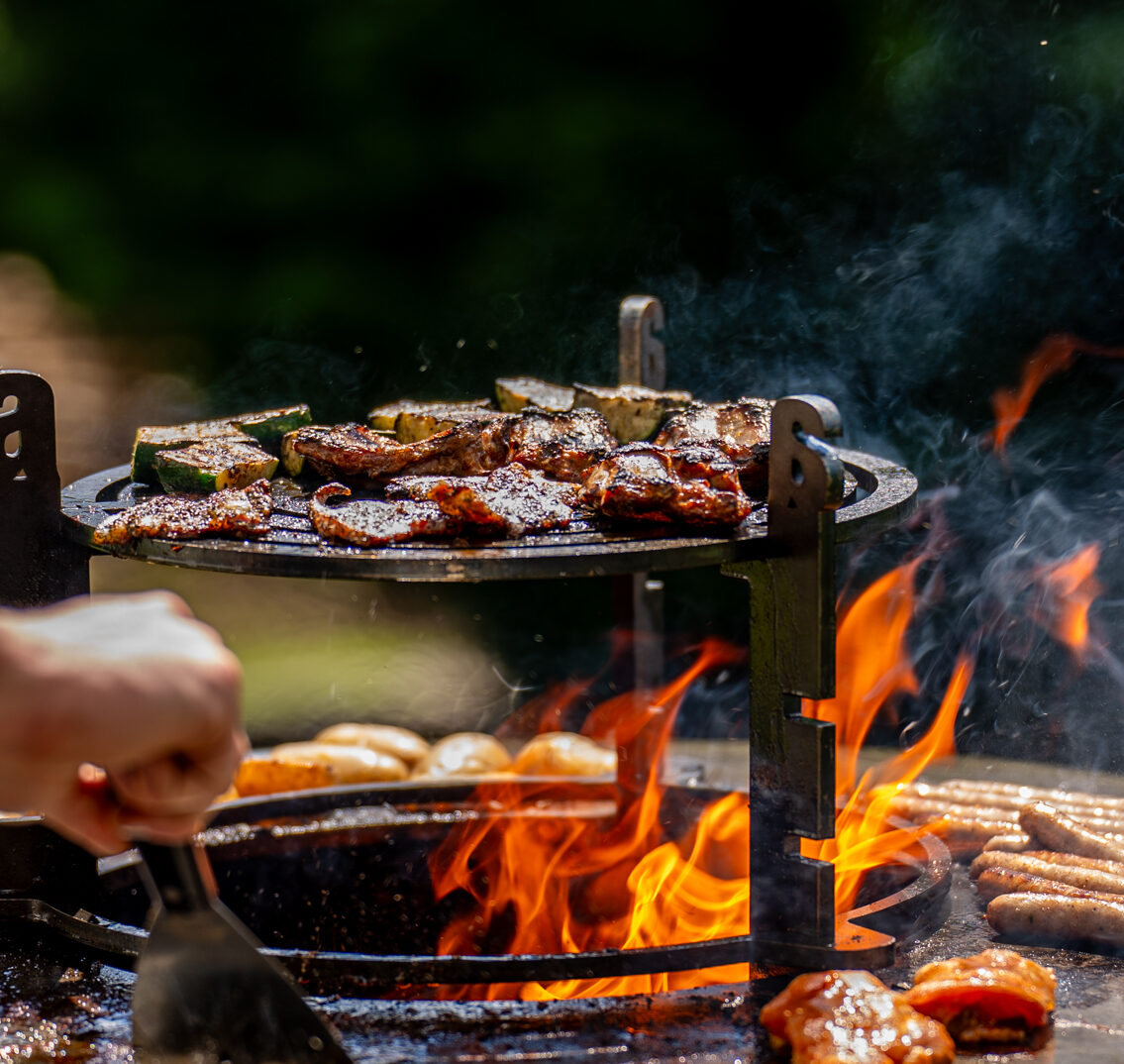 Verstelbare grillrooster – 3 standen met meegeleverde sleutel, speciaal ontworpen voor liefhebbers van koken op houtvuur en authentiek grillen. Dankzij het praktische systeem kunt u de kookhoogte in een handomdraai aanpassen en genieten van perfecte warmtecontrole.